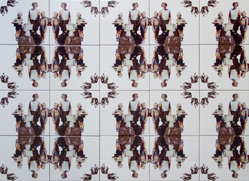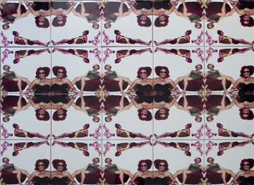Far off just beeing decoration Azulejos represent cultural identity. They transport the imagery oft the country and reflect on its development through history. The commener tourist often finds the perfect holiday memory in them. Azulejos are Portugese trademark. In the Image Souvenir Series this relation is reversed. The tourist leaves his image behind on one of the most important expressions of portuguese culture. He is abducted into the ornamental Designs and becames part of the Fassades of the citiy he has visited.